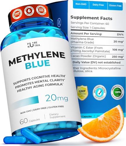 PureNutra delivers pharmaceutical-grade methylene blue in a straightforward 20mg capsule formula designed for daily cognitive and energy support. Their approach emphasizes pure power in every dose, with highly bioavailable methylene blue designed for fast absorption and lasting mental clarity. The formulation avoids fillers and unnecessary additives, focusing on delivering clean methylene blue enhanced with vitamin C and cacao powder.